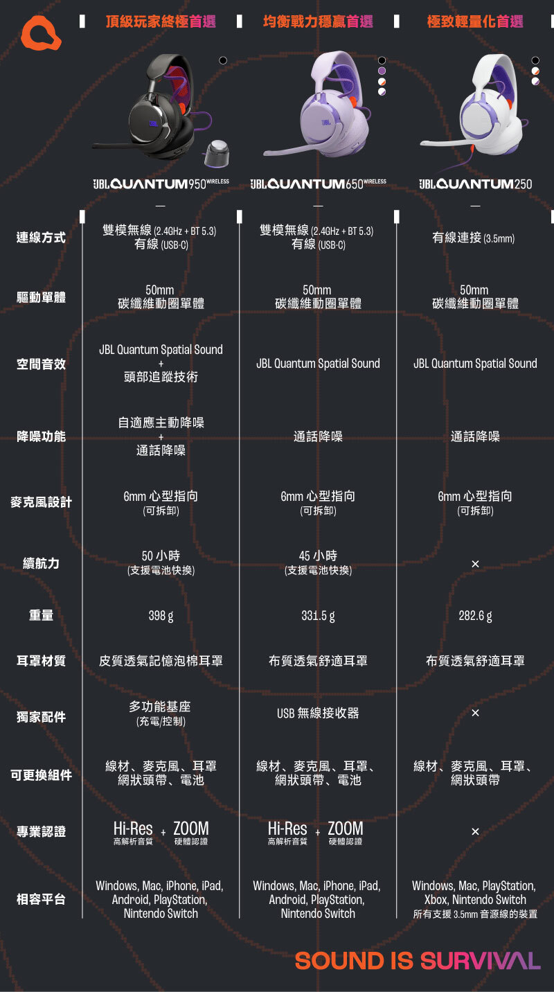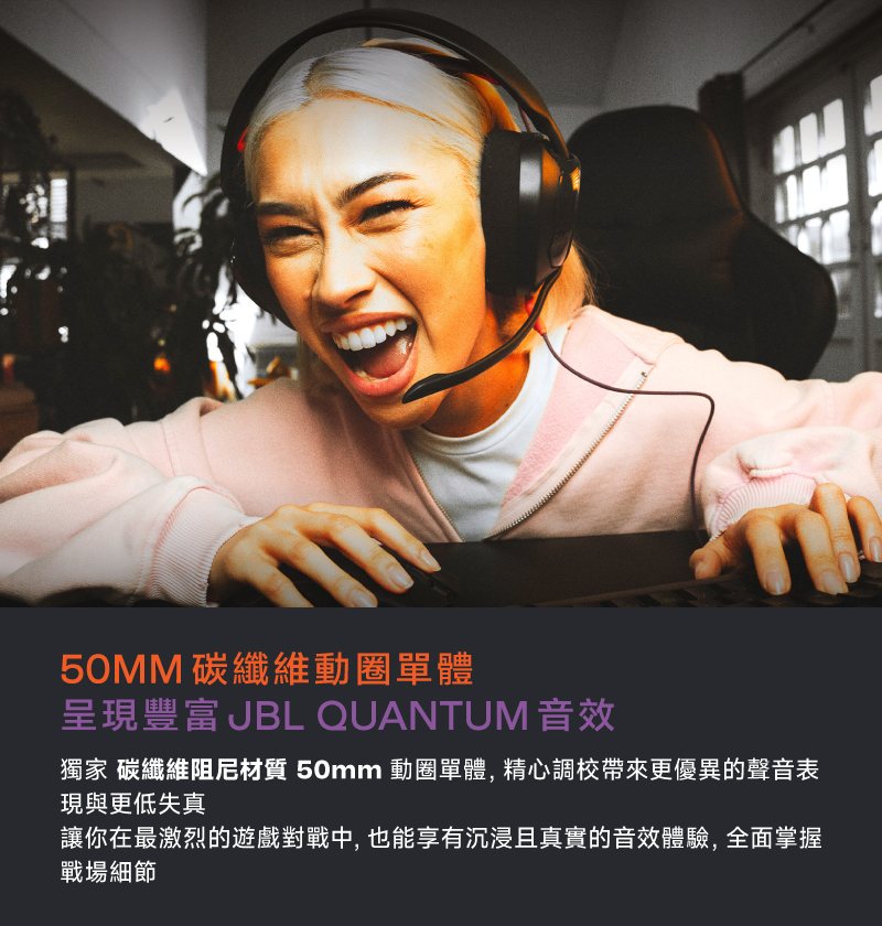 ✅JBL Quantum 空間音效,立體環繞聲場。