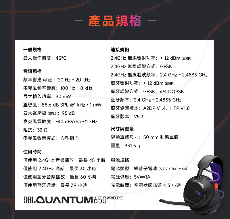 🎧 JBL Quantum 650 三模無線電競耳機