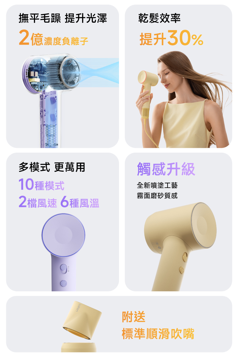 ✨2億奈米級負離子,頭髮柔順不毛躁