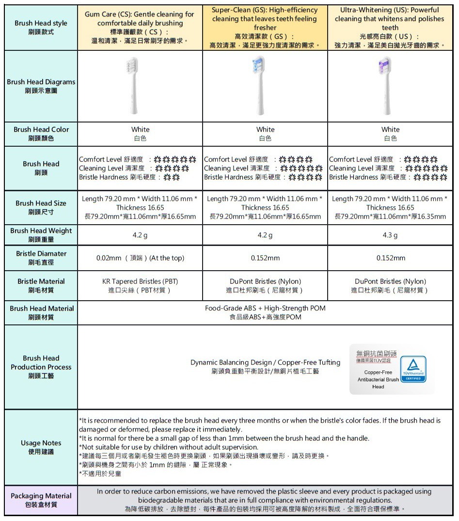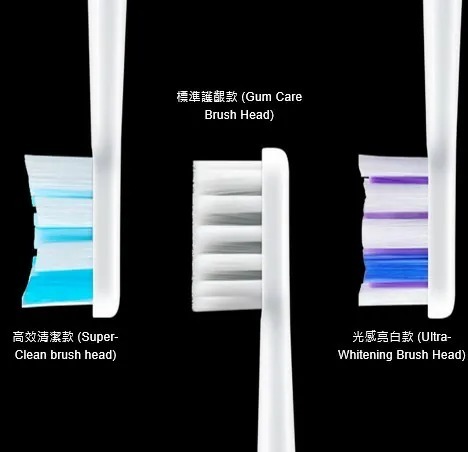 1.標準護齦款刷頭 (扁平型刷毛):提供基本的日常清潔功能,