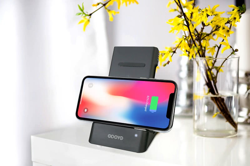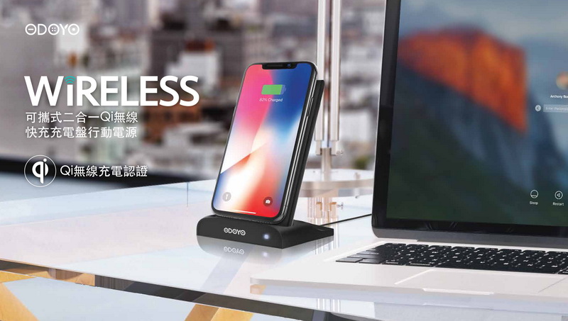 ●充電盤採可攜式設計,是無線充電盤也是行動電源