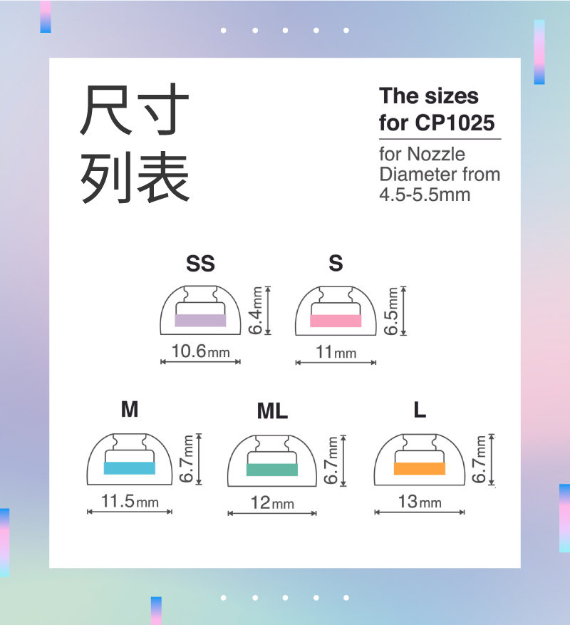 雙尺寸混合包裝,內附2對相鄰尺寸