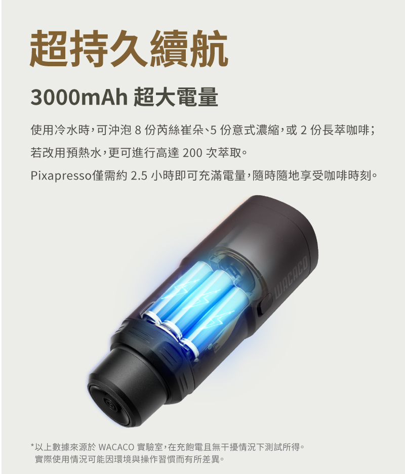 ✨超強電量滿足多次沖煮